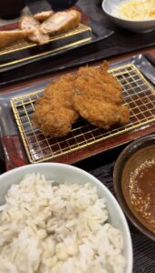ホテル🏨を後にし 濱かつでの夕食🍽️   ランチに夕食にとご馳走さまでした♪お肉も久しぶりの麦ご飯も美味しかった〜💗